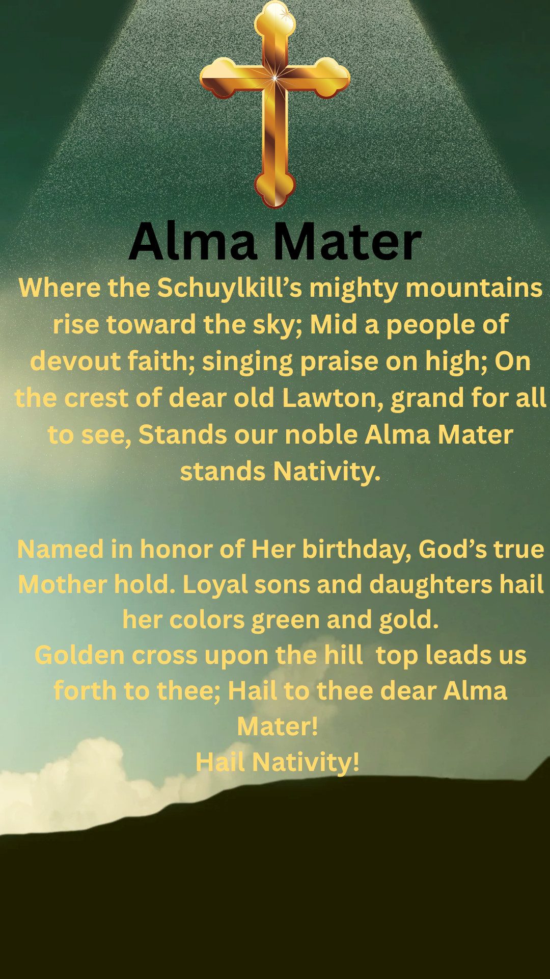 The Golden Crosses that our new members receive are quite special: they are the product of the creative drive of another of our alumni, Mr. Charles Sophy. Mr. Sophy designed these solid 10 carat gold crosses to reflect the pattern of light and windows that characterizes the front of our school building. This generous gift on the part of Mr. Sophy has enabled us to present truly a beautiful and genuine tribute to the members of our society. What makes them extra special is that they are truly something of Nativity High School; no one else has anything quite like this.